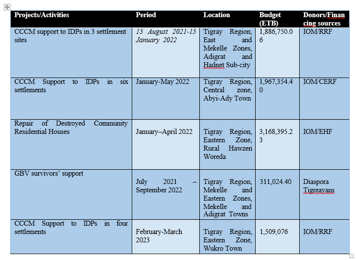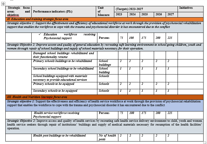 3. Interventions in the education and health sector will entail huge implementation costs. The mobilization costs are also high. To ensure cost effectiveness, implementation of projects will consider nearer geographical at Southern, Southeastern and Eastern Tigray.