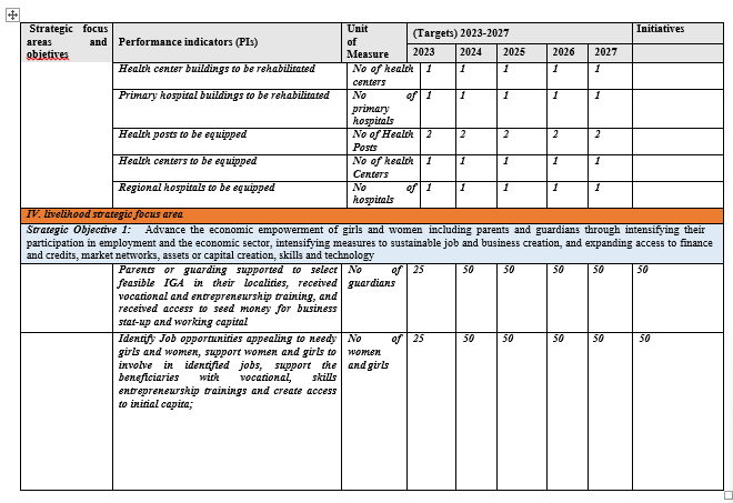 Strategic Objective 2. Strengthen Legal Frameworks and Enforcement Mechanisms: This objective focuses on enhancing the legal protections for women and girls to ensure their rights are upheld and respected. It involves advocating for the implementation and enforcement of laws that protect against gender-based violence, discrimination, and exploitation. This also includes providing legal aid and support services to survivors of violence, raising awareness about women’s rights, and promoting gender-sensitive policies and practices within institutions and communities.